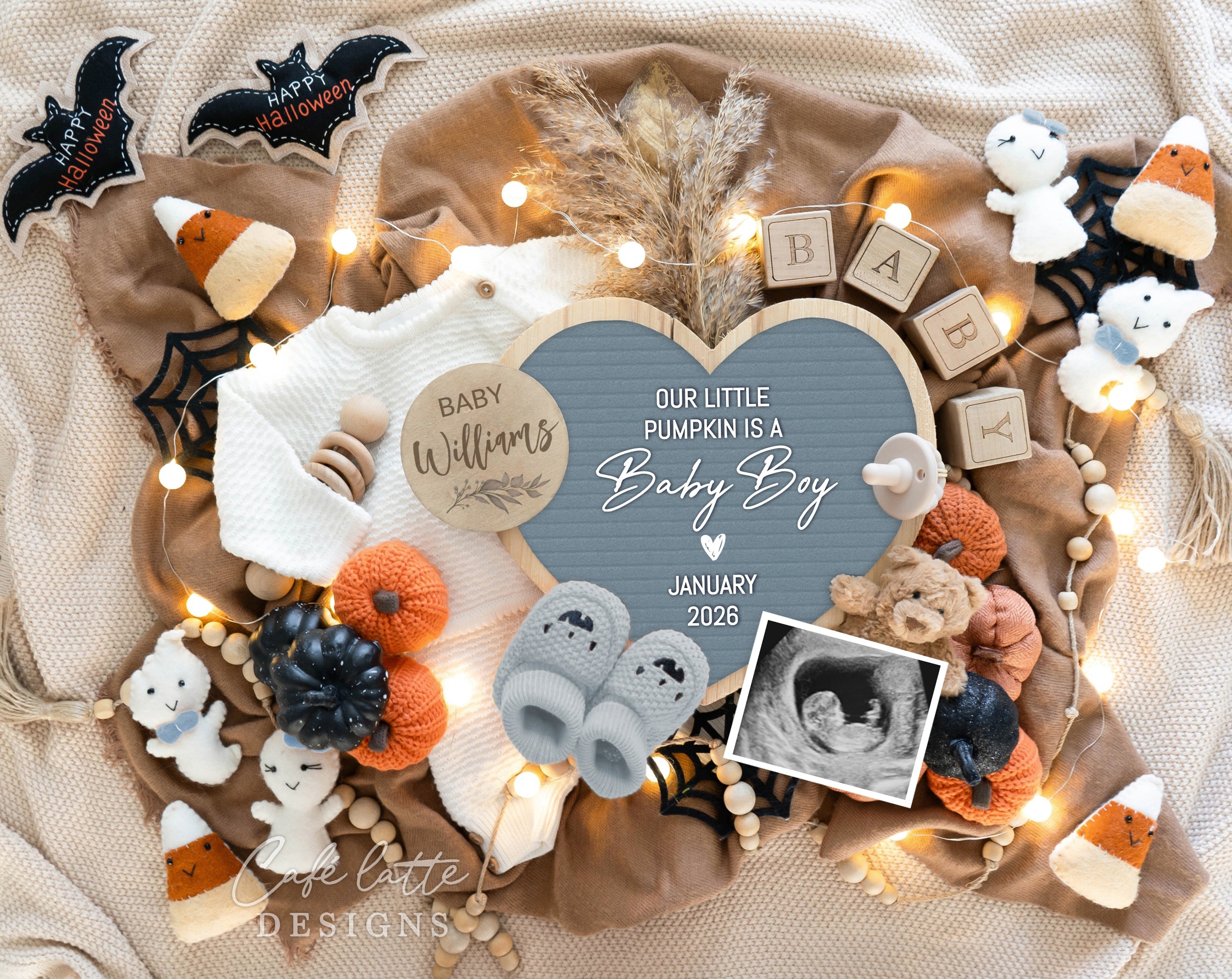 Halloween Boy Gender Reveal Digital - Little Pumpkin Boy Pregnancy Announcement