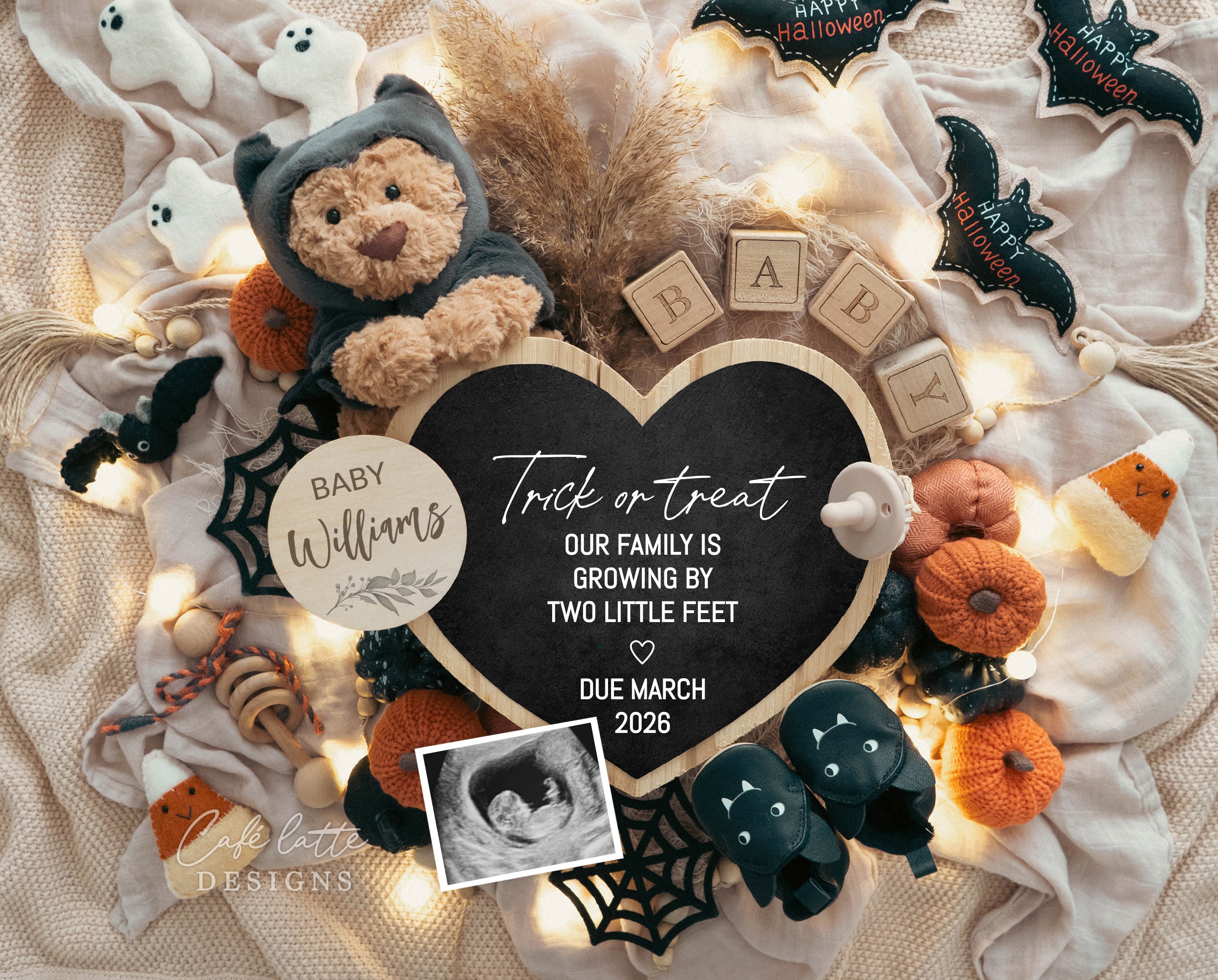 Halloween Pregnancy Announcement Digital, Pregnancy Announcement Template Social Media, Baby Announcement Halloween, Editable DIY Template