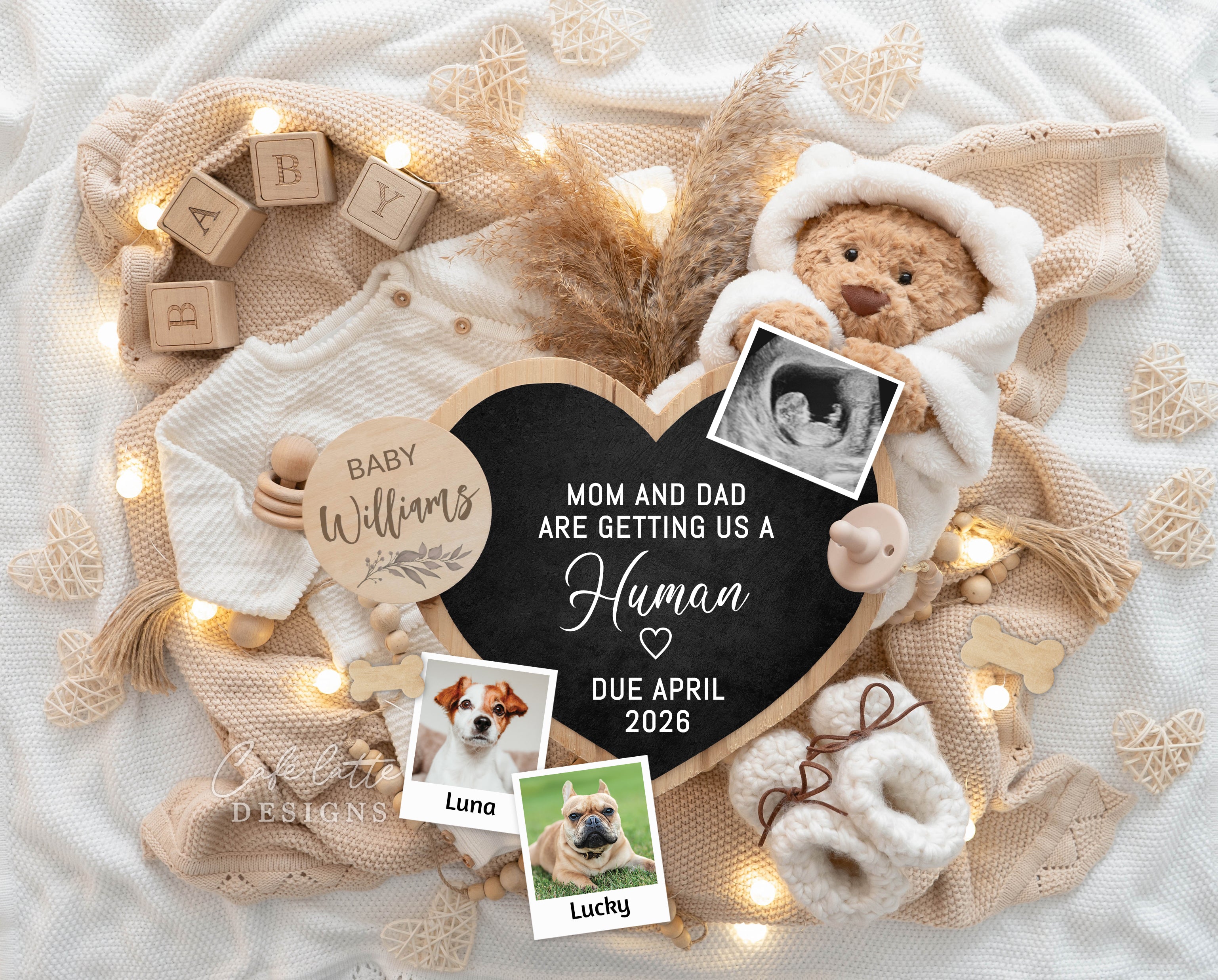 Dog Pregnancy announcement digital, Animal Pregnancy announcement to husband, Dogs Pregnancy announcement template, Pregnancy announcement grandparents, Pregnancy reveal, Pregnancy announcement gift, Neutral little bear pampas heart chalkboard, Mom and dad are getting us a human, Pet pregnancy reveal ideas, Original pregnancy announcement ideas, 2 dogs baby reveal editable template, instant download