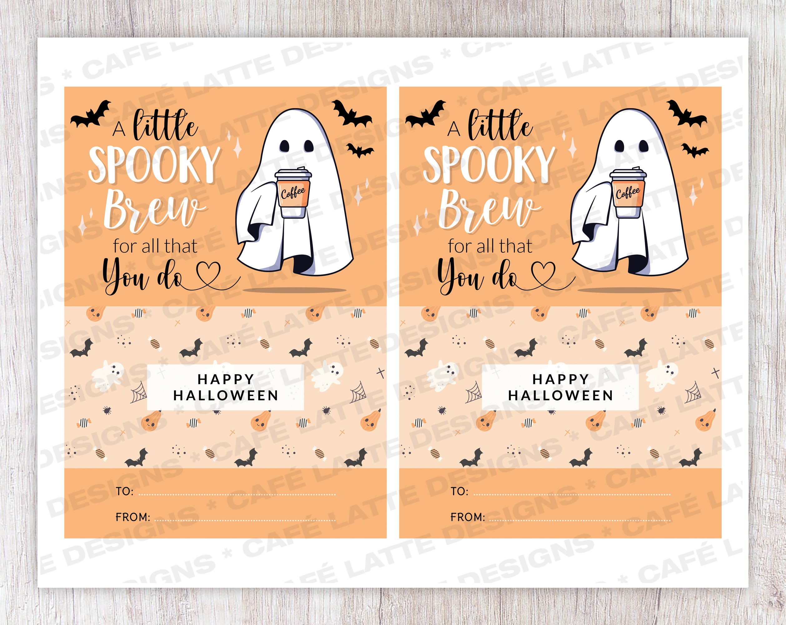 Halloween gift card holder printable, A little spooky brew for all that you do, Halloween teacher coffee gift card coupon, Halloween teacher appreciation Gift ideas for school and preschool, Thank you gift card holder, Coffee cup ghost bats Halloween gift card holder digital instant download DIY