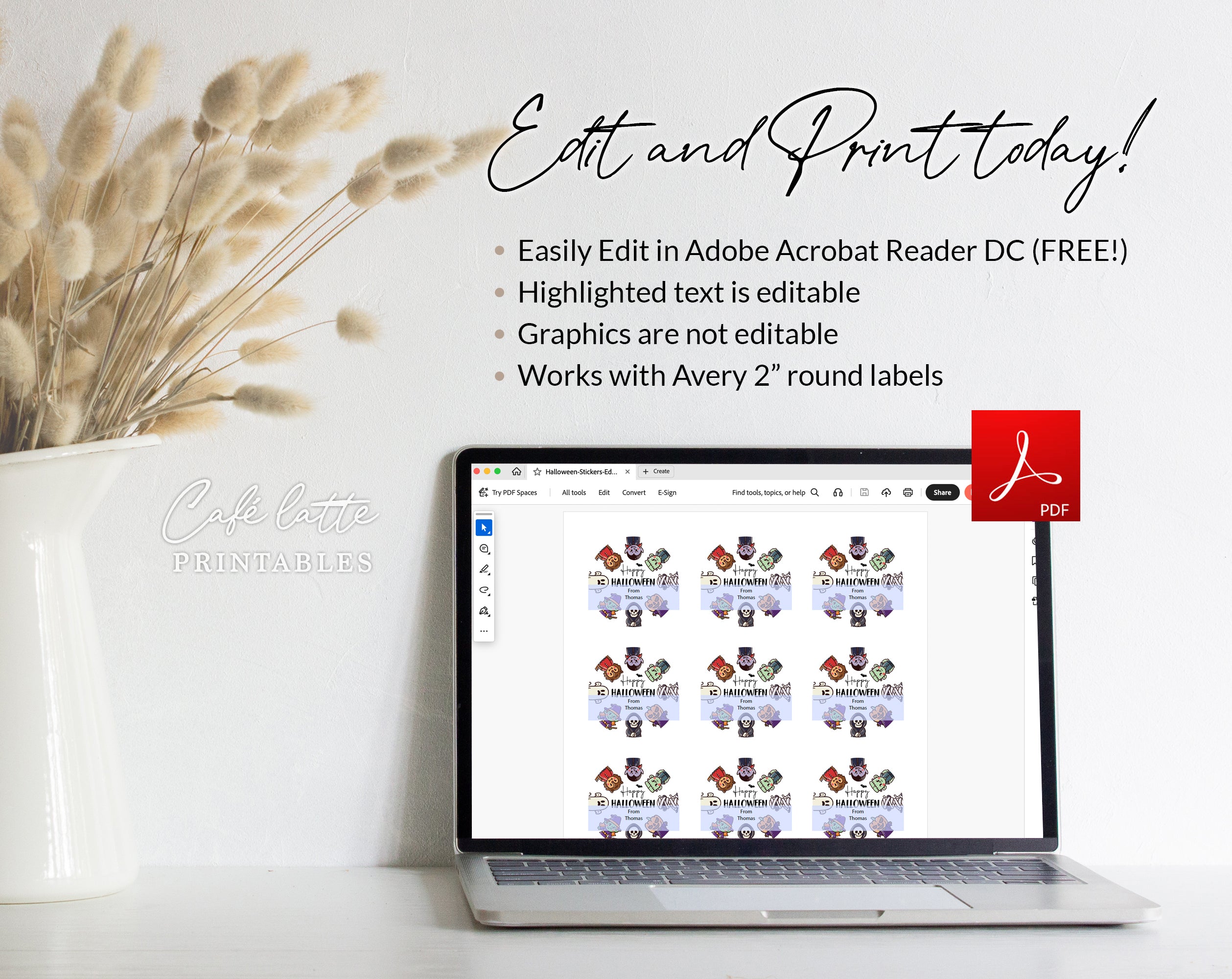 ⦁ Print on Avery 2" round label sheets