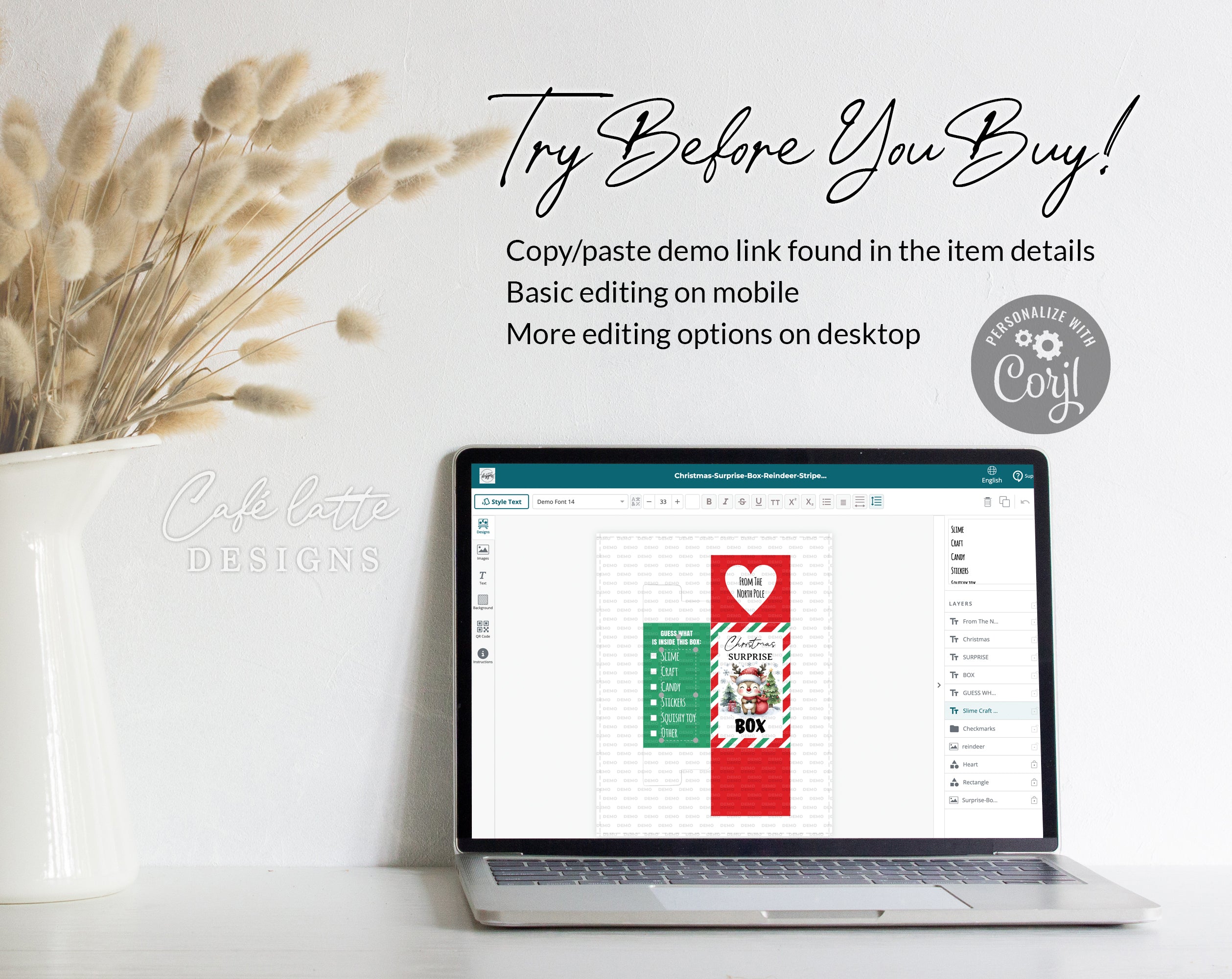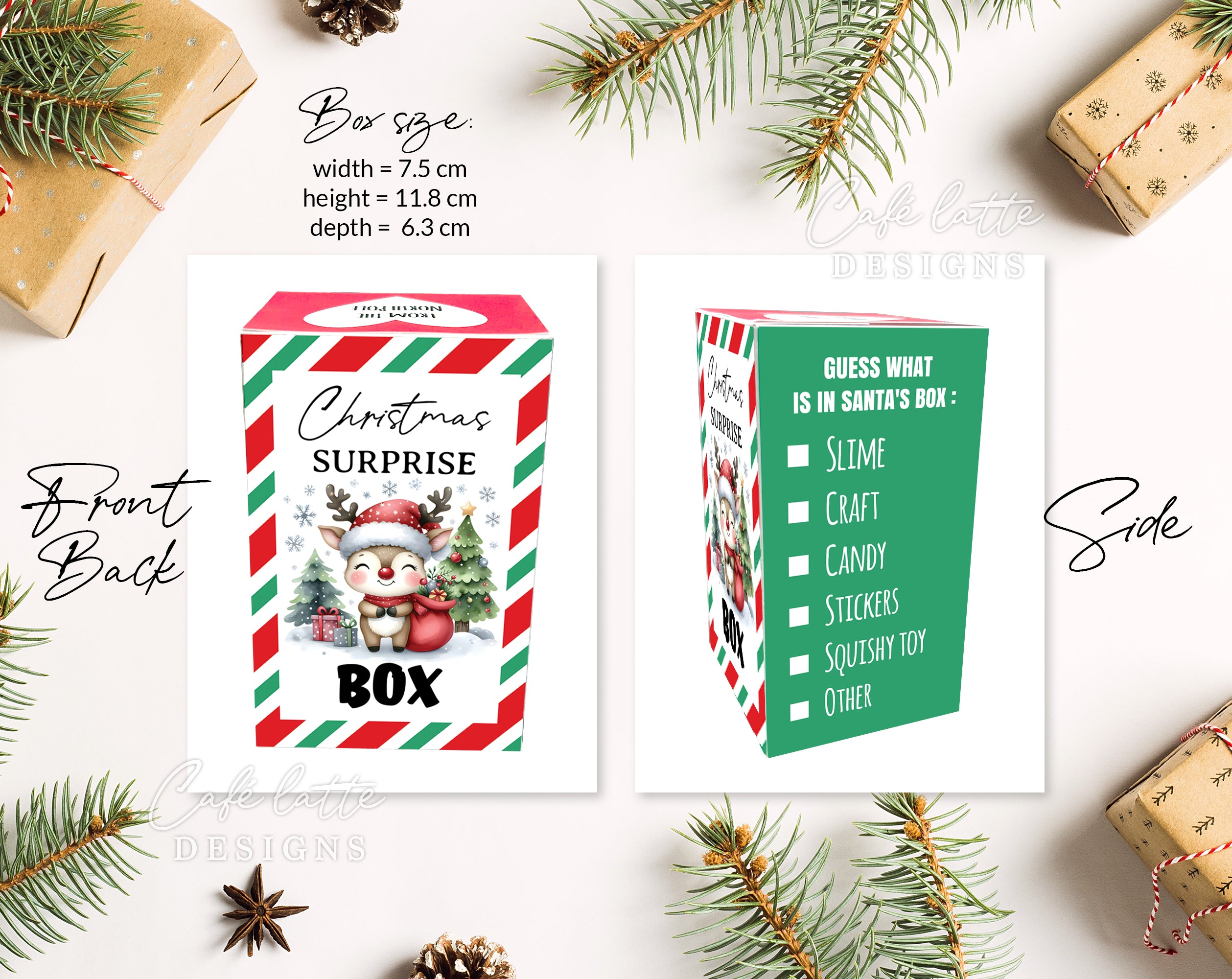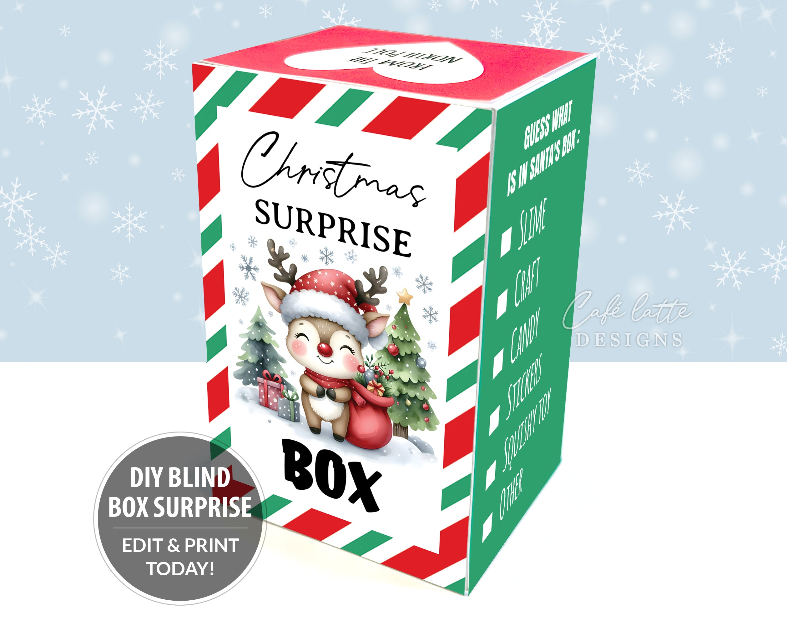 CHRISTMAS Blind Box Printable, Surprise Box Christmas Gift Editable Template, Personalized Custom Gift Box Reindeer, Stocking Stuffer DIY