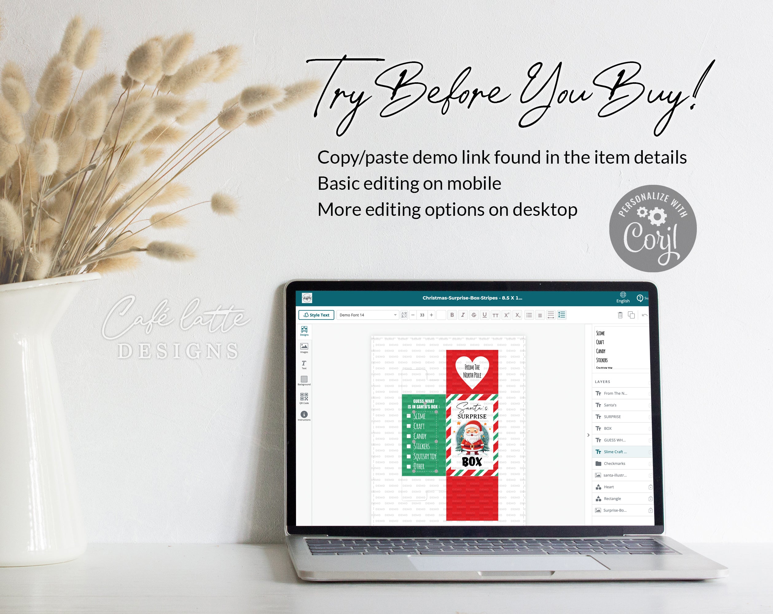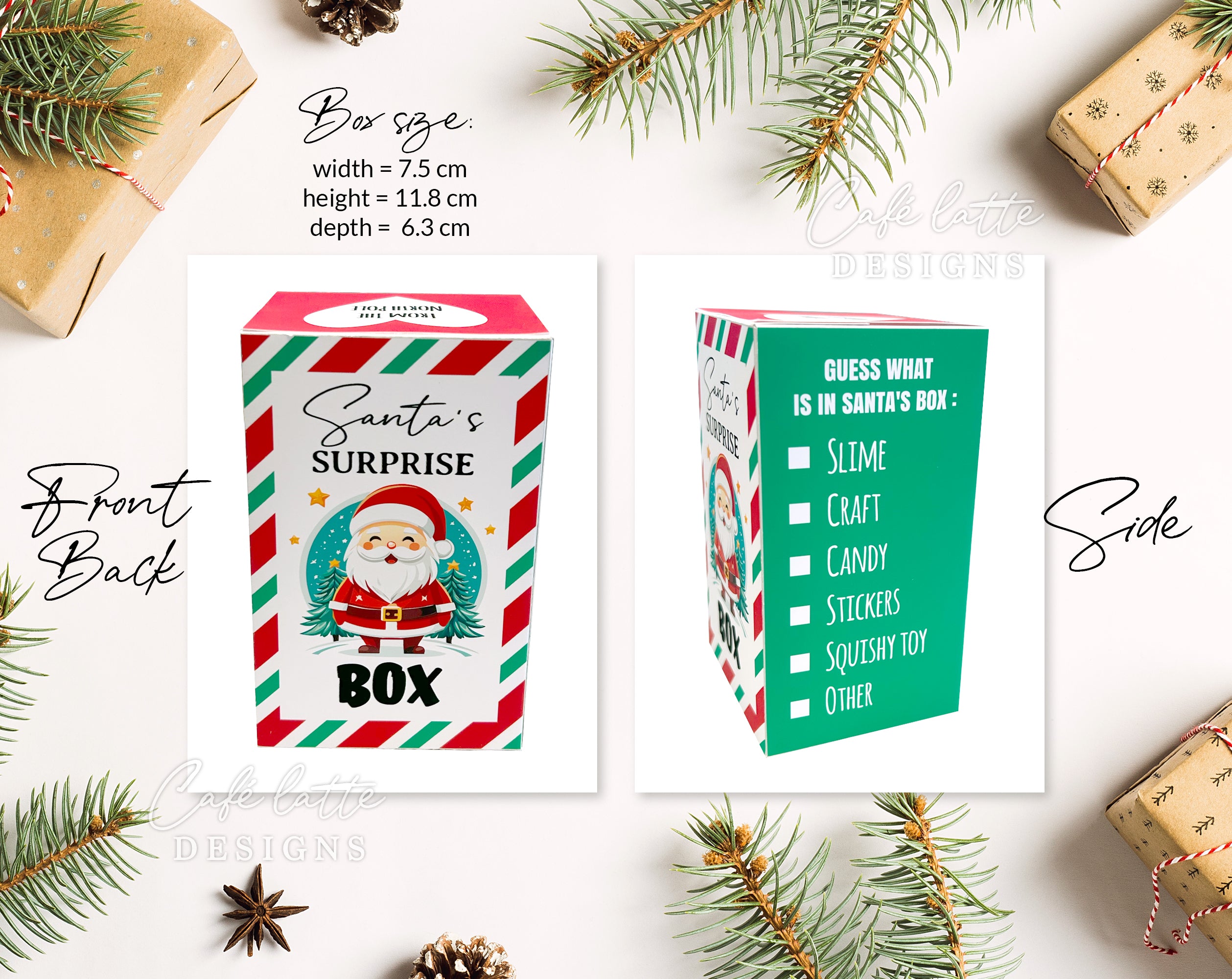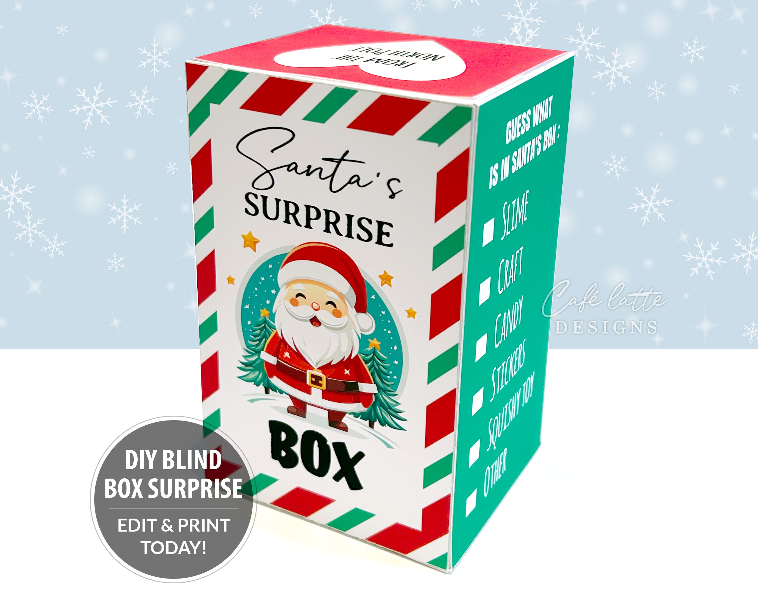 Christmas gift surprise box editable template, Christmas gift surprise blind box printable for kids teens, Merry Christmas gift box template with Santa Claus, Last minute stocking stuffer gift idea for kids teens, Instant download original custom personalized gift idea from the elf elves DIY